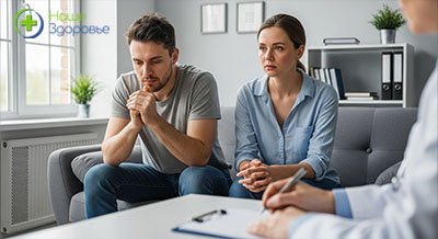 Мужчина и женщина сидят на приеме у психиатра